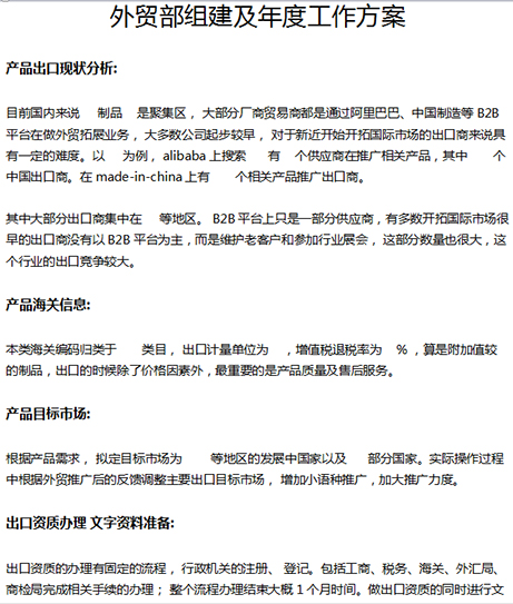 本文詳細列舉了關于外貿部組建的要點內容,簡析了外貿出口的渠道,并對于外貿前期(兩個月)需要的準備工作做了介紹:
